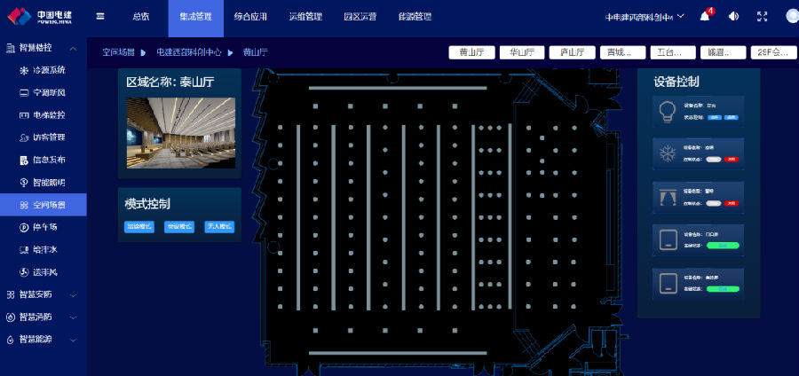 用戶在中國電建小程序隨時(shí)了解會(huì)議室使用情況,并預(yù)訂會(huì)議室,大幅提高會(huì)議室使用效率;會(huì)議室內(nèi),用戶可通過達(dá)實(shí)空間場(chǎng)景交互屏直接進(jìn)行設(shè)備本地控制,包括單點(diǎn)控制和場(chǎng)景模式控制。