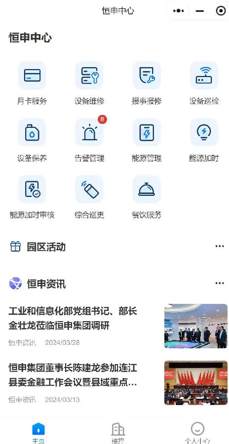 手機作為必不可少的移動應用工具,已經(jīng)覆蓋了工作、生活等多個場景,根據(jù)用戶需求,達實為其提供了定制化的移動應用解決方案。利用“恒申中心”小程序可提供設備集控、訪客邀約、會議室管理、報事報修、能源管理等服務,營造智慧舒適的辦公環(huán)境,同時兼顧節(jié)能減排。