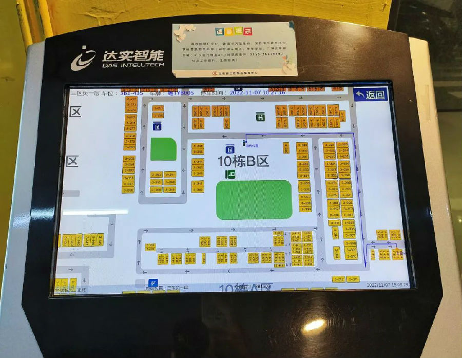 此外,停車場內(nèi)的電梯廳各入口處均安裝有達(dá)實(shí)觸摸式尋車查詢終端,大廈用戶取車前只需在終端上輸入車牌號,系統(tǒng)可以自動調(diào)出相對應(yīng)的信息,并在查詢終端上顯示停車點(diǎn)及取車路線,有效幫助園區(qū)用戶以最快的速度找到車輛。