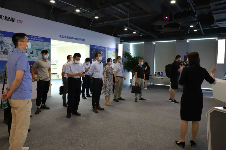 參觀期間參訪團來到智慧醫(yī)療展廳對達實智慧醫(yī)院整體建設方案,基于物聯(lián)網(wǎng)技術與信息化平臺,實現(xiàn)了醫(yī)院內(nèi)物與物、物與人以及人與人的連接,全面提升醫(yī)院運營效率、降低醫(yī)院能耗,讓醫(yī)院真正實現(xiàn)可感知、可執(zhí)行、會思考、能成長。并以淮南市智慧醫(yī)療PPP項目為例,向考察訪團分享了達實在智慧醫(yī)療建設領域?qū)崿F(xiàn)的技術創(chuàng)新與實際成果。