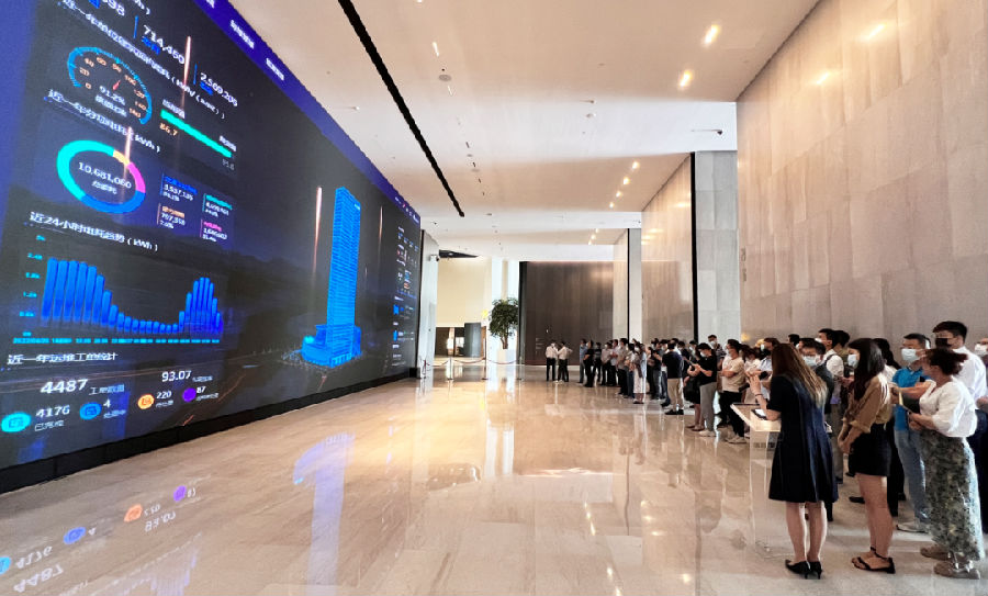 工作人員結(jié)合達(dá)實(shí)智能AIoT物聯(lián)網(wǎng)智能管控平臺(tái)為參觀嘉賓進(jìn)行現(xiàn)場(chǎng)講解,包括如何通過平臺(tái)實(shí)時(shí)了解大廈樓層的能耗數(shù)據(jù)信息,以及如何觀看電梯實(shí)時(shí)狀態(tài)、人流統(tǒng)計(jì)、大廈停車位統(tǒng)計(jì)等內(nèi)容。