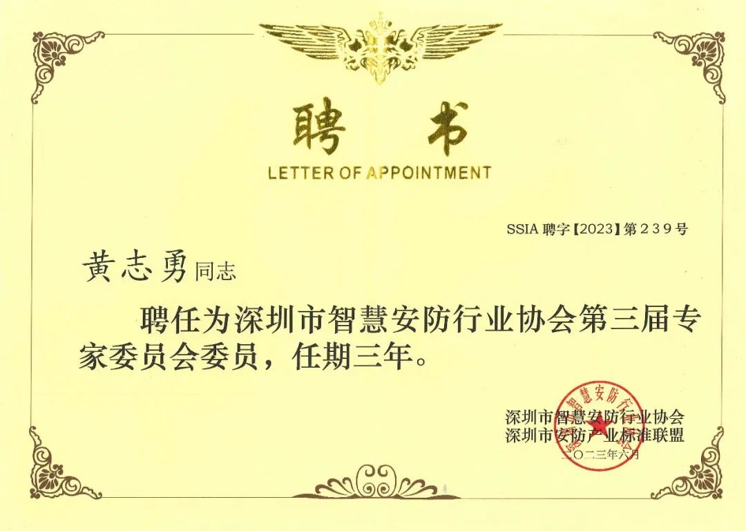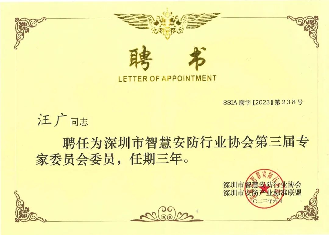 達實物聯(lián)總工程師汪廣、市場總監(jiān)黃志勇,空間場景高級項目總監(jiān)程斌雄、研發(fā)中心副總監(jiān)楊雅婧成功入選深圳市智慧安防行業(yè)協(xié)會專家委員會專家。