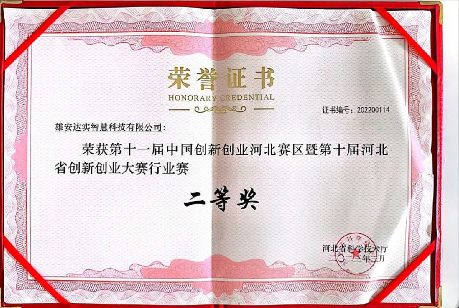 經(jīng)形式審查、初賽和行業(yè)賽等環(huán)節(jié)的激烈角逐,雄安達(dá)實(shí)智慧科技有限公司從4381支隊(duì)伍中脫穎而出,榮獲大賽二等獎(jiǎng)!