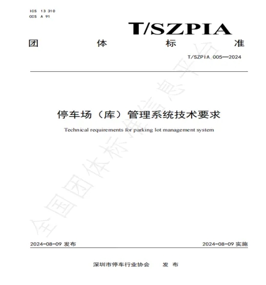 2024年8月9日,團(tuán)體標(biāo)準(zhǔn)《停車場(庫)管理系統(tǒng)技術(shù)要求》(T/SZPIA 005—2024)(以下簡稱“本標(biāo)準(zhǔn)”)正式發(fā)布,自發(fā)布之日起正式實(shí)施。