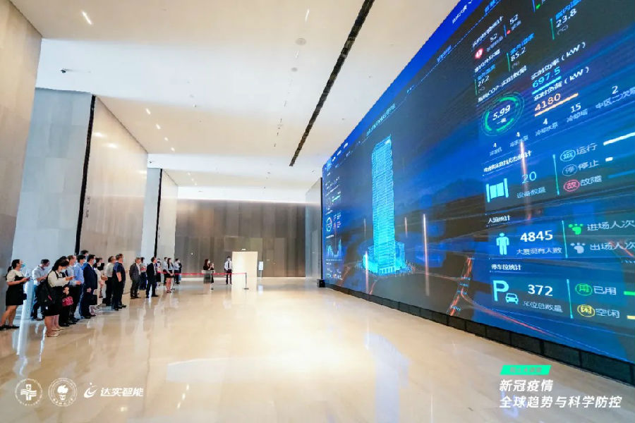 戰(zhàn)略合作簽約儀式前,盧洪洲院長一行來到達實大廈一樓的運營指揮中心,現(xiàn)場感受達實智能依托“云+邊+端”架構(gòu)打造的AIoT物聯(lián)網(wǎng)智能管控平臺。