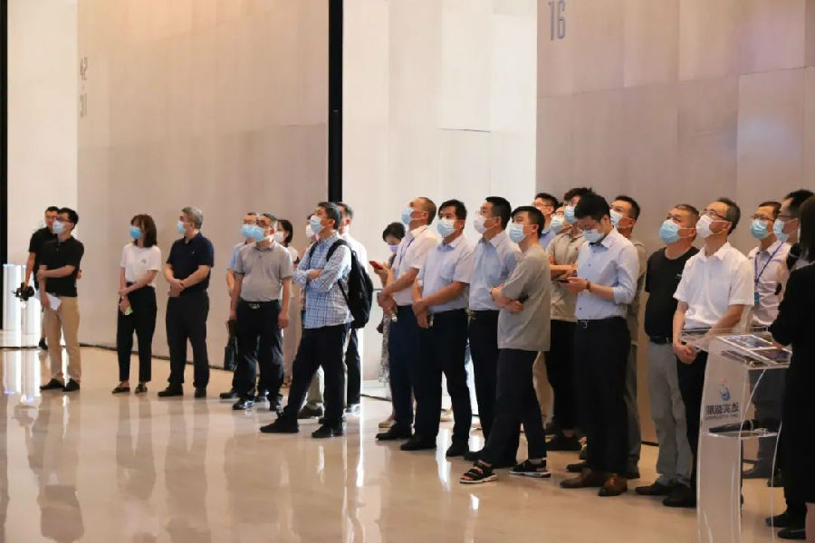 6月19日上午,“雙灣計(jì)劃”青島交流團(tuán)一行30余企業(yè)家走進(jìn)達(dá)實(shí)智能大廈,體驗(yàn)達(dá)實(shí)大廈智能科技應(yīng)用,達(dá)實(shí)智能副總裁呂總、市場總監(jiān)關(guān)總與達(dá)實(shí)物聯(lián)網(wǎng)市場總監(jiān)黃總?cè)膛阃瑓⒂^交流。