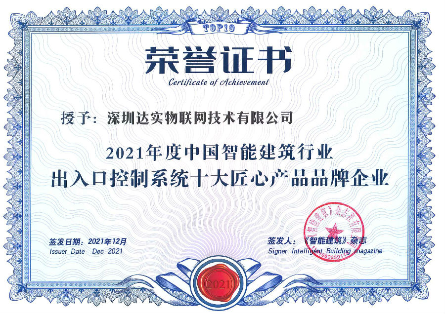 憑借卓越的品牌影響力及優(yōu)異的成績,達實物聯(lián)在眾多品牌中脫穎而出,再度斬獲“智慧城市運營管理平臺十大匠心產(chǎn)品品牌”及“出入口控制系統(tǒng)十大匠心產(chǎn)品品牌”兩項大獎。