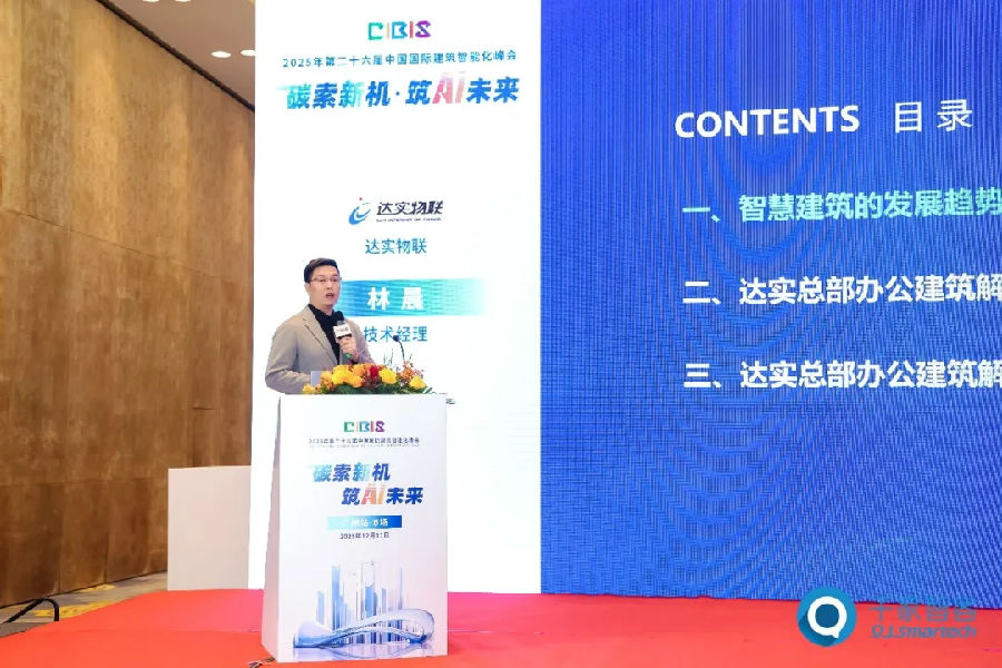 在同期舉辦的第26屆CIBIS建筑智能化峰會(huì)上,達(dá)實(shí)物聯(lián)技術(shù)經(jīng)理林晨受邀發(fā)表“面向總部辦公建筑的創(chuàng)新場景及解決方案”主題演講。