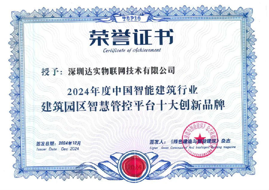 為了響應(yīng)國家經(jīng)濟高質(zhì)量發(fā)展戰(zhàn)略,弘揚精益求精的“工匠精神”,促進智能建筑行業(yè)企業(yè)創(chuàng)新轉(zhuǎn)型發(fā)展,《綠色建造與智能建筑》雜志社開展了“2023年度中國智能建筑行業(yè)十大匠心產(chǎn)品品牌企業(yè)評選”工作。憑借多年來在建筑智能化行業(yè)的探索與實踐、創(chuàng)新與成果,深圳達實物聯(lián)網(wǎng)技術(shù)有限公司在眾多品牌中脫穎而出,連續(xù)多年榮獲“建筑園區(qū)智慧管控平臺十大創(chuàng)新品牌”及“智慧安防系統(tǒng)十大匠心產(chǎn)品品牌”兩項大獎。